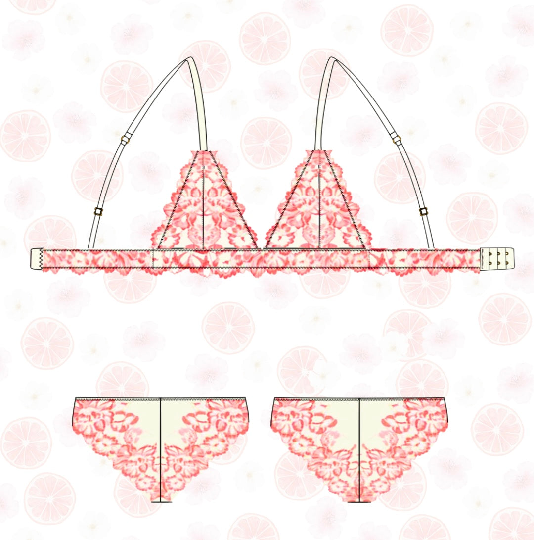 Les patrons sont inclus ! Le soutien-gorge triangle Délicate ainsi que le tanga Bellissima format pdf A4.