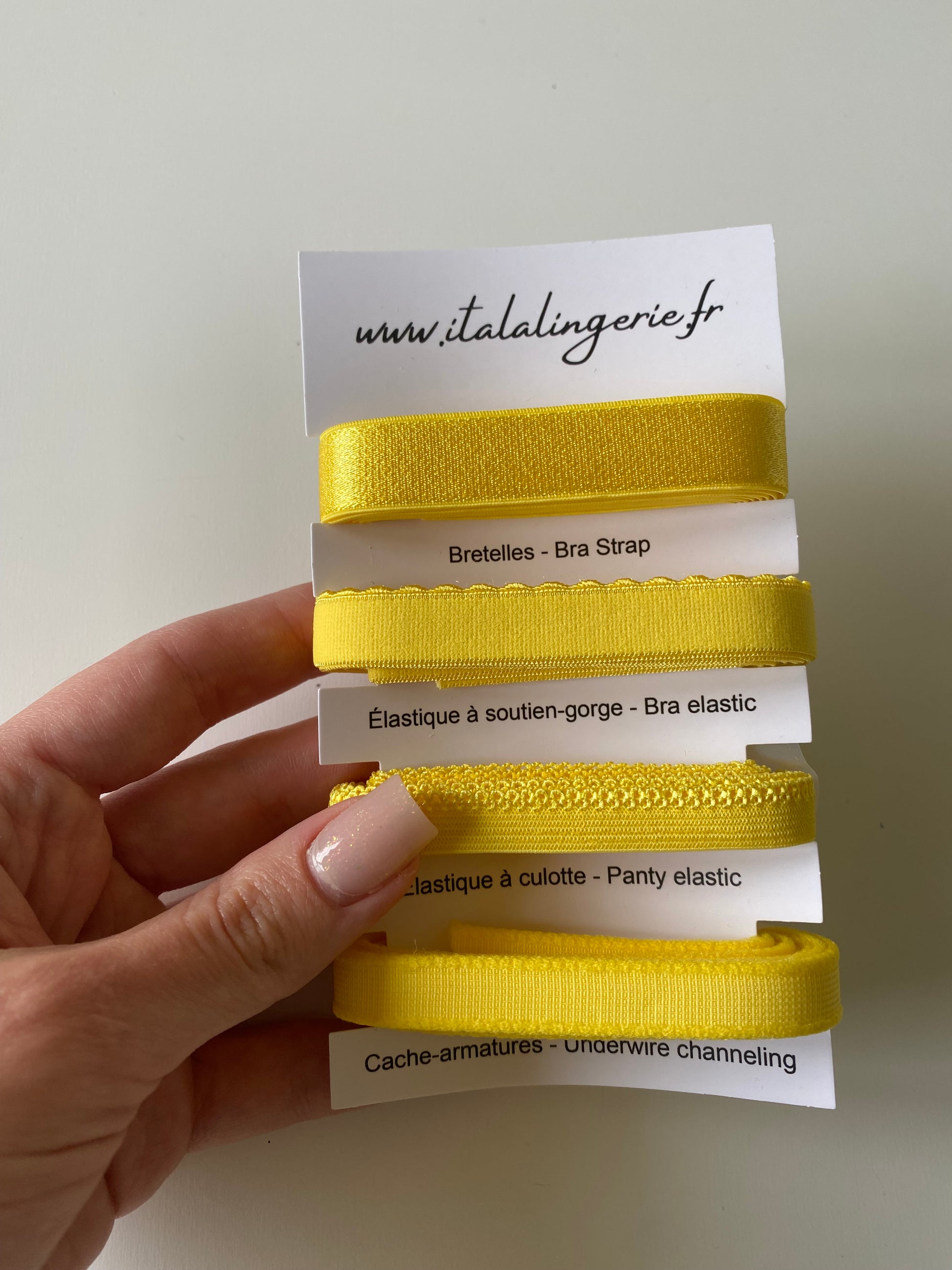 Idéal pour réaliser un ensemble soutien-gorge et culotte sans ne rien oublier en élastiques ! Coloris accordés.