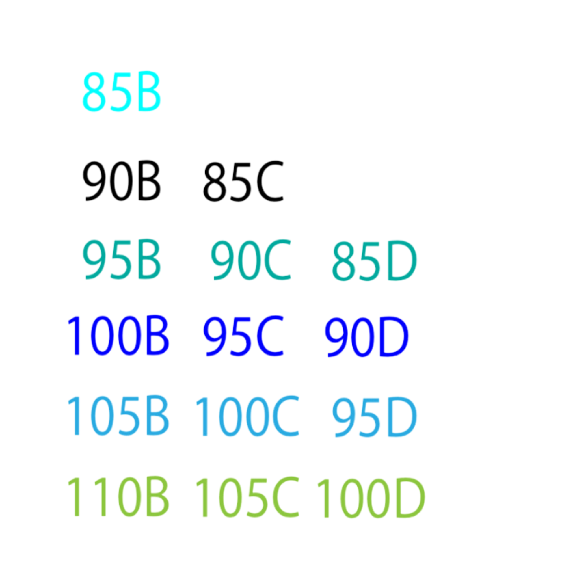 - Tailles 85B-110B / correspondance en taille jumelles (= 90A-100D voir tableau).